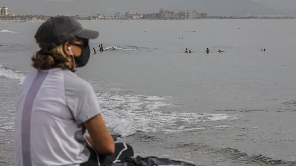 Bañista en Andalucía con mascarilla en la playa: «Es muy molesta, sobre todo con el calor, pero hay que llevarla»